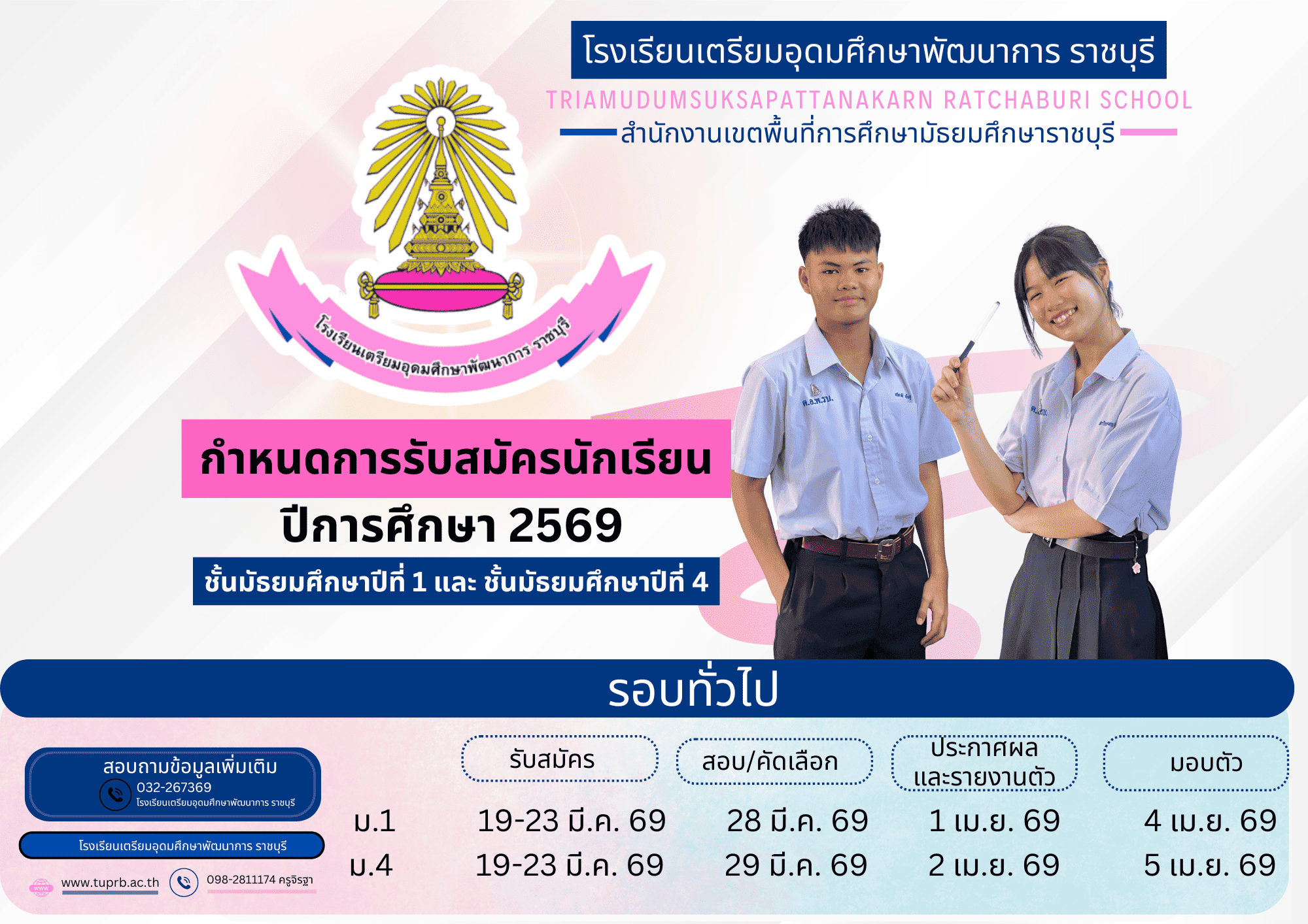 โรงเรียนเตรียมอุดมศึกษาพัฒนาการ ราชบุรี ประกาศรายชื่อนักเรียนที่มีสิทธิ์สอบเข้าศึกษาต่อระดับชั้นมัธยมศึกษาปีที่ ๑ ปีการศึกษา ๒๕๖๘ 25 มี.ค. 68